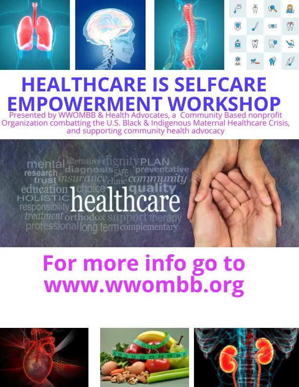 WWOMBB & Health Advocates offers our Community Health & Advocacy Workshops as free, live online webinars for all registered participants. Our community workshops take patient health and healthcare education, self-advocacy, and informed consent to the next level, putting you in the driver’s seat of your decisions. The workshops are facilitated by a certified Community Health Worker, and is packed with over two hours of hard-hitting facts, insights, information, and resources. We have several current workshops to choose from. Although workshops are free, all participants must register to attend, since workshops are limited to 25 participants each. All webinar workshops will be scheduled with a date and time that we will post on WWOMBB Calendar of Events, here. Please go to our Calendar of Events and click on a date to get the link to register. You may also search up WWOMBB Community Health Workshops on Eventbrite to register directly. See the topics for our FREE workshops below.